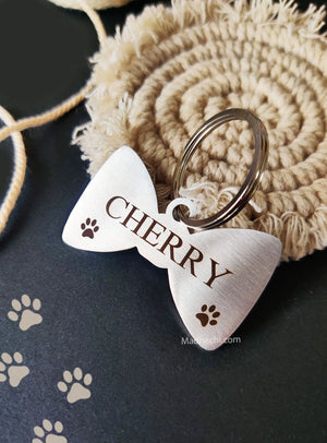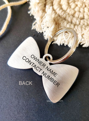 Looking for a trendy BOW Tie Dog Tag for your adorable Dog? Here is the cutest dog name tag in the shape of a BOW!
