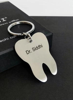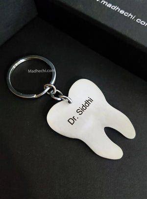 What can make a better gift for a Dentist than this cute little tooth keychain with personalized name engraved !