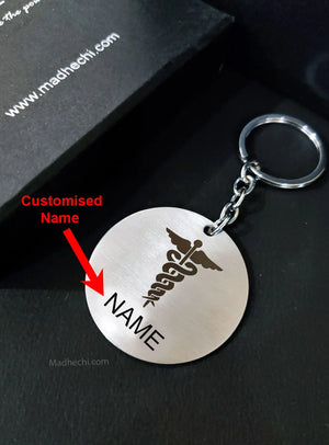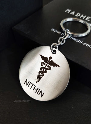 Doctor Keychain is beautifully crafted in stainless steel metal with a luxurious matte finish.