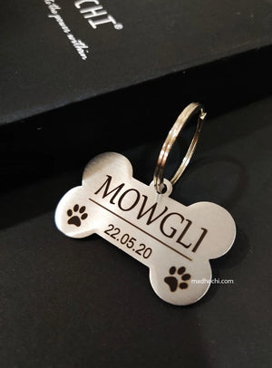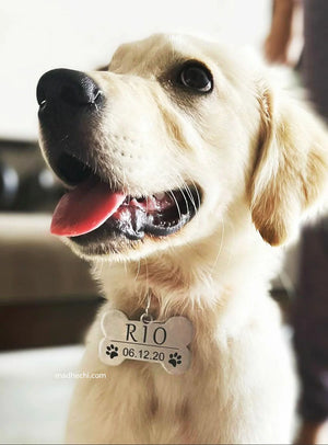 You can mention the date of birth of your pet on the dog bone tag along with its name