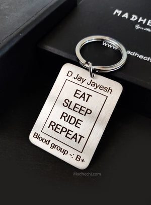 Eat Sleep Ride Repeat keychain with customized Name and Blood group