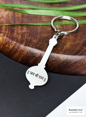 - Engraved with "Jai Shree Ram," this keychain celebrates the deep devotion of Hanuman Ji towards Lord Ram, encouraging the bearer to embody his qualities of unwavering faith and dedication.
