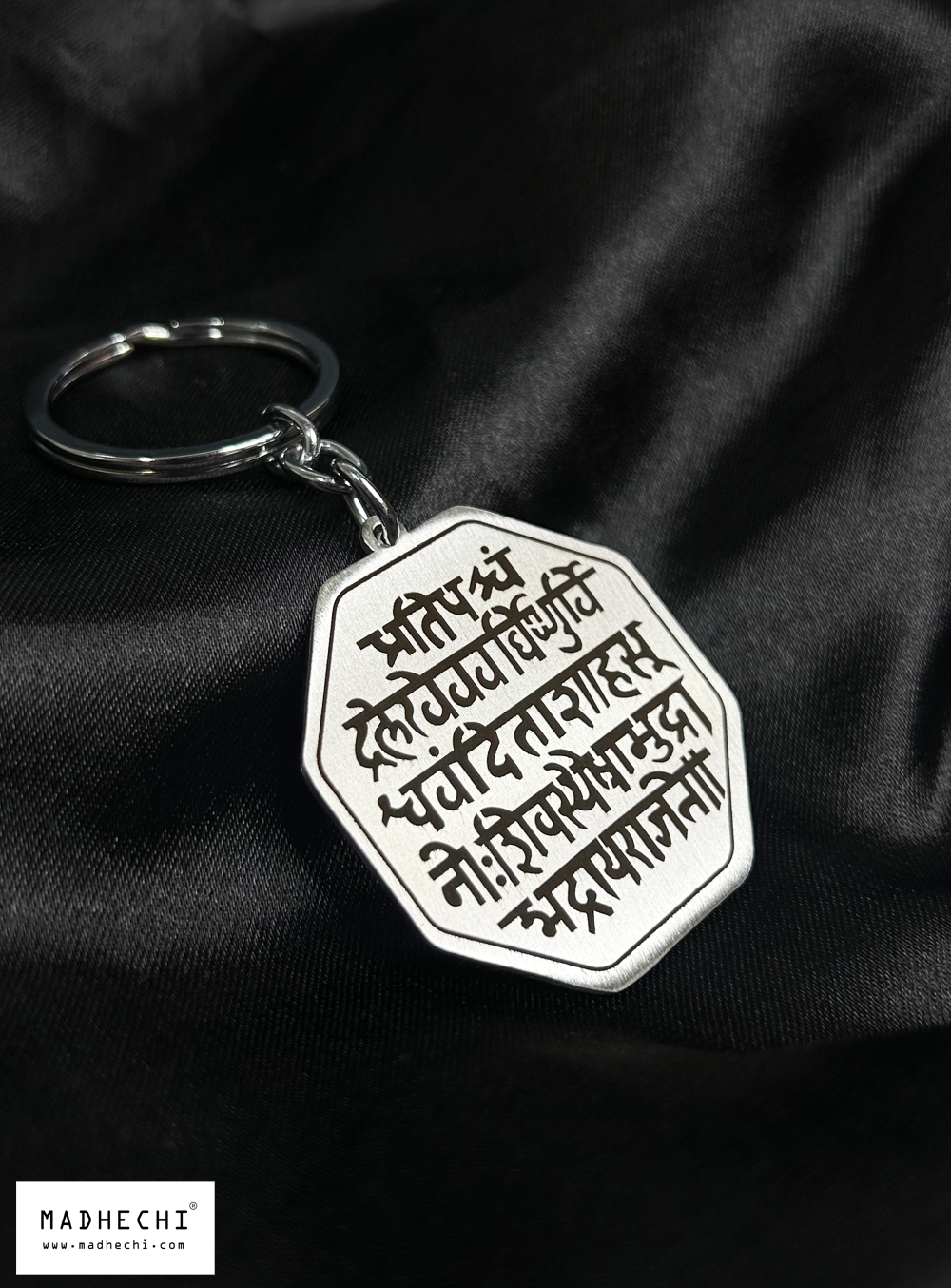 The Rajmudra Keychain is a beautiful and intricate piece of art that serves as a daily reminder of your devotion to the Great Shivaji Maharaj.