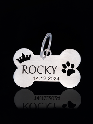 Here is the Dog Tags With Name Engraved in the shape of a Paw and Crown !