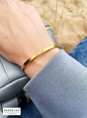 The MADHECHI Personalized Bracelet is the perfect blend of elegance and individuality. Crafted for men and women, this custom name bracelet lets you engrave your name, initials, or a meaningful word, making it a unique and timeless accessory. Designed for daily wear, it features a sleek, adjustable fit to ensure maximum comfort while adding a touch of sophistication to any outfit. Whether you're looking for a personalized gift for a loved one or a stylish statement piece for yourself, this bracelet is the ultimate expression of who you are.