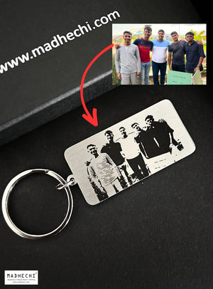 Carry a cherished photo with you wherever you go, beautifully engraved on this unique keychain.